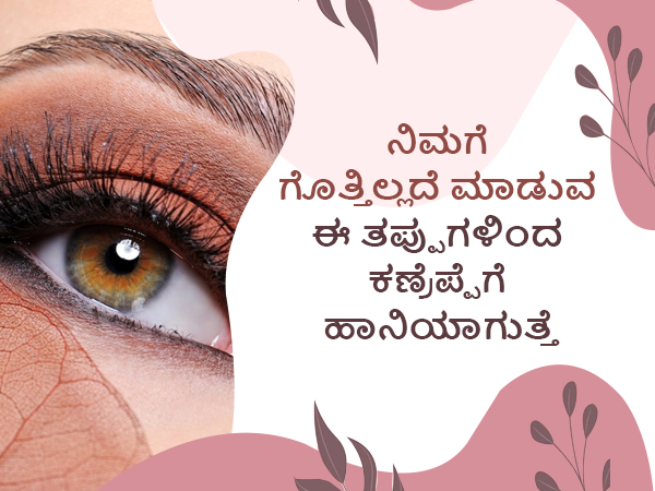 ನೀವು ಕಣ್ರೆಪ್ಪೆ ಮೇಕಪ್ ಮಾಡುವಾಗ ಗೊತ್ತಿಲ್ಲದೆ ಮಾಡುವ ಕೆಲವು ತಪ್ಪುಗಳಿಂದಾಗಿ ನಿಮ್ಮ ಮೇಕಪ್ ಹಾಳಾಗುವುದು ಮಾತ್ರವಲ್ಲ ಕೆಲವೊಂದು ತಪ್ಪುಗಳು ಕಣ್ಣಿಗೆ ಹಾನಿಯುಂಟು ಮಾಡುತ್ತದೆ. ಆದ್ದರಿಂದ ಈ ಬಗೆಯ ತಪ್ಪುಗಳನ್ನು ಮಾಡುತ್ತಿದ್ದರೆ ನಿಮ್ಮ ಕಣ್ರೆಪ್ಪೆಗೆ ಹಾನಿಯುಂಟು ಮಾಡುವುದು, ಆದ್ದರಿಂದ ಜಾಗ್ರತೆ!