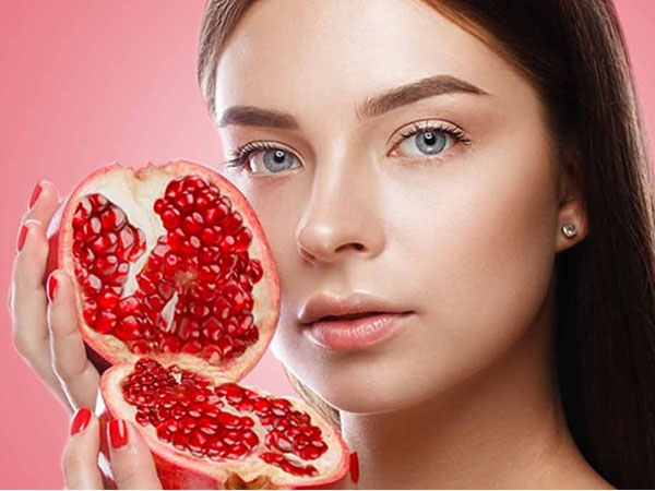 ದಾಳಿಂಬೆಯಲ್ಲಿ ವಿಟಮಿನ್ ಸಿ ಇದ್ದು ಚರ್ಮದಲ್ಲಿ ಹೊಳಪು ಹೆಚ್ಚಿಸುತ್ತದೆ. ಇದಲ್ಲದೆ, ಹಣ್ಣಿನ ಕೆಂಪು ರಸವನ್ನು ಕೆನ್ನೆ ಮತ್ತು ತುಟಿಗಳಿಗೆ ನೇರವಾಗಿ ಹಚ್ಚವುದರಿಂದ ಕೆನ್ನೆ ಮತ್ತು ತುಟಿಗಳ ಮೇಲೆ ಬ್ಲಶ್ ಸ್ಟೇನ್ ನೋಟವನ್ನು ಕಾಣಬಹುದು. ಇದು ನೈಸರ್ಗಿಕ ಹಾಗೂ ಯಾವುದೇ ರೀತಿಯ ಸಂರಕ್ಷಕಗಳನ್ನು ಹೊಂದಿರದ ಕಾರಣ, ಯಾವುದೇ ಹಾನಿ ಮಾಡುವುದಿಲ್ಲ ಮತ್ತು ಬದಲಿಗೆ ಚರ್ಮದ ನೋಟವನ್ನು ಸುಧಾರಿಸುತ್ತದೆ.
