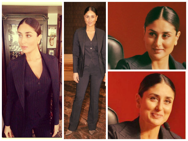 ಕರೀನಾ ಕಪೂರ್ ರವರು ಈ ಕಾರ್ಯಕ್ರಮಕ್ಕಾಗಿ ಮೂರು ವರಸೆಯ ಉಡುಗೆಯನ್ನು ತೊಟ್ಟಿದ್ದರು. ಪುರುಷಯ ಮೂರು ವರಸೆಯ ಸೂಟ್ ಉಡುಗೆಯನ್ನು ಹೋಲುವ ಈ ಉಡುಗೆಯಲ್ಲಿ ಒಳಗಣ ಶರಾಯಿ ಕಾಲರ್ ಹೊಂದಿದ್ದು ಒಂದು ಮುಖ್ಯವಾದ ಬಟನ್ ಕಣ್ಣು ಸೆಳೆಯುವಂತೆ ವಿನ್ಯಾಸಗೊಳಿಸಲಾಗಿತ್ತು.