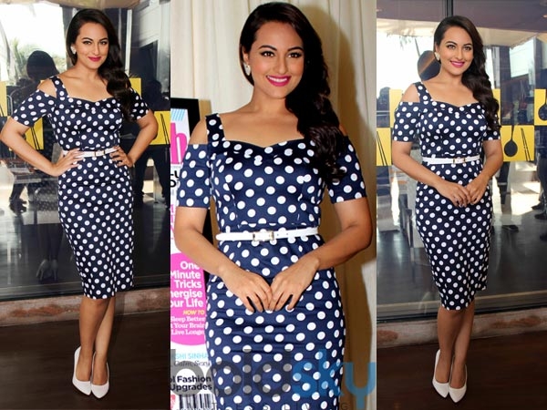 ಸೋನಾಕ್ಷಿ ವುಮೆನ್ಸ್ ಹೆಲ್ತ್ ಮ್ಯಾಗಝೀನ್ ಅನ್ನು ಹೊರತಂದಾಗ, ಆಕೆ ಎಸ್ಓಎಸ್ ಪೋಲ್ಕಾ ಡಾಟ್ ವುಳ್ಳ ಧಿರಿಸನ್ನು ಧರಿಸಿದ್ದರು. ಇದರಲ್ಲಿ ಆಕೆ ಮೋಡಿ ಮಾಡುವಂತೆ ಕಂಡುಬಂದದ್ದಂತೂ ನಿಜ.