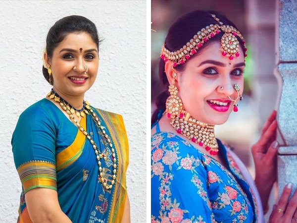 ಅನು ಅವರ ಈ ಲುಕ್ ನೋಡಿ ತುಂಬಾನೇ ಚೆನ್ನಾಗಿದೆ ಅಲ್ವಾ? ದೊಡ್ಡ ಮೂಗುತಿ, ಸಾಂಪ್ರದಾಯಿಕ ಆಭರಣ, ತುರುಬು ಕಟ್ಟಿ ಮಲ್ಲಿಗೆ ಮುಡಿದು ಲಕ್ಷ್ಮಿ ಕಳೆಯಿಂದ ಕಂಗೊಳಿಸುತ್ತಿದ್ದಾರೆ.