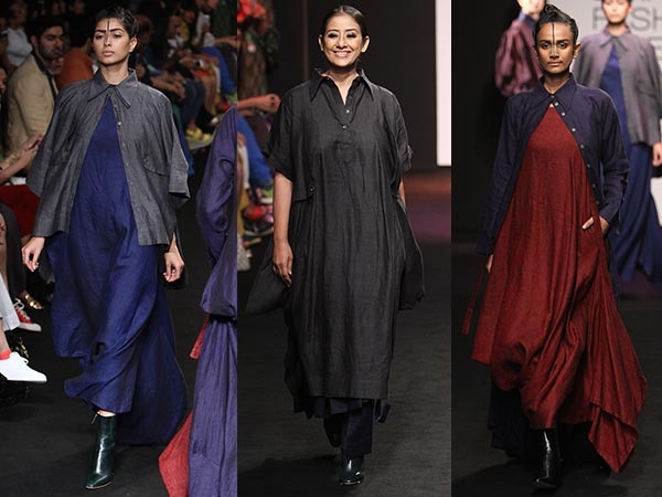 ಈ ವಿನ್ಯಾಸಗಳಲ್ಲಿ ಗಾಢವರ್ಣಗಳೇ ಹೆಚ್ಚು ಪ್ರಮುಖವಾಗಿದ್ದವು. ಗಾಢಬೂದು, ಗಾಢಕೆಂಪು ಮತ್ತು ಗಾಢನೀಲಿ ಬಣ್ಣದ ಉಡುಗೆಗಳೇ ಹೆಚ್ಚು ಕಂಡುಬಂದವು. ಈ ವಿನ್ಯಾಸ ನಮಗೆಷ್ಟು ಇಷ್ಟವಾಯಿತೋ ಅಷ್ಟೇ ನಿಮಗೂ ಇಷ್ಟವಾಗಬಹುದು ಎಂದುಕೊಂಡಿದ್ದೇವೆ.