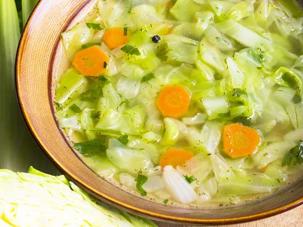 ಈ ಸೂಪ್ ತಯಾರಿಸಲು ಮೊದಲು ಕೊಂಚ ಕೋಸು ಮತ್ತು ಈರುಳ್ಳಿಯನ್ನು ಕೊಚ್ಚಿ ಆಲಿವ್ ಎಣ್ಣೆಯಲ್ಲಿ ಚಿಕ್ಕ ಉರಿಯಲ್ಲಿ ಹತ್ತು ನಿಮಿಷ ಬಾಡಿಸಬೇಕು. ಬಳಿಕ ಕಾಳುಮೆಣಸು, ಉಪ್ಪು, ಸೇಬಿನ ಶಿರ್ಕಾ ಹಾಗೂ ಟೊಮಾಟೋ ಬೆರೆಸಬೇಕು. ಕೊಂಚ ನೀರು ಹಾಕಿ ಇಪ್ಪತ್ತು ನಿಮಿಷ ಚಿಕ್ಕ ಉರಿಯಲ್ಲಿ ಕುದಿಸಿದರೆ ಸೂಪ್ ಸಿದ್ಧವಾಗಿದೆ. ಇದರಲ್ಲಿ ಕೇವಲ 248 ಕ್ಯಾಲೋರಿಗಳಿದ್ದು ಜೀವರಾಸಾಯನಿಕ ಕ್ರಿಯೆಯನ್ನು ಚುರುಕುಗೊಳಿಸುವ ಗುಣವಿರುವ ಕಾರಣ ತೂಕ ಇಳಿಕೆ ಶೀಘ್ರವಾಗುತ್ತದೆ.