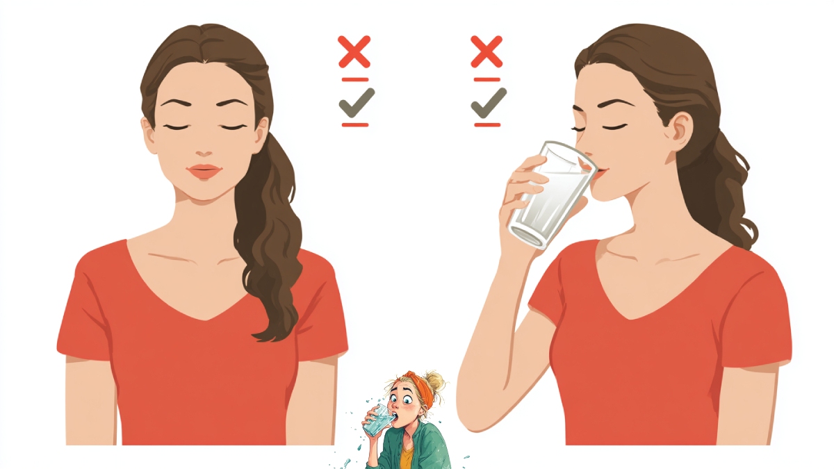ತಪ್ಪು 1: ಒಂದೇ ಗುಟುಕಿನಲ್ಲಿ ನೀರು ಕುಡಿಯುವುದು