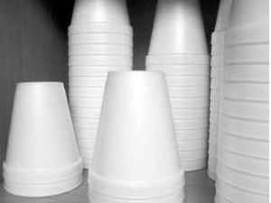 ಸ್ಟೈರೊಫಾಮ್ ಕಪ್ (Styrofoam cups)ಎಂದು ಕರೆಯಲಾಗುವ ಈ ಕಪ್ ಅನ್ನು ಪಾಲಿಸ್ಟೈರಿನ್(polystyrene) ನಿಂದ ತಯಾರಿಸಲಾಗುವುದು. ಉತ್ತಮ ಗುಣಮಟ್ಟದ ಪಾಲಿಸ್ಟೈರಿನ್ ಅನ್ನು ಹೆಲ್ಮೆಟ್ ಮತ್ತು ಇತರ ಪ್ಲಾಸ್ಟಿಕ್ ವಸ್ತುಗಳನ್ನು ತಯಾರಿಸಲು ಬಳಸಲಾಗುವುದು. ಅನೇಕ ಪೇಪರ್ ಕಪ್ ಗಳಿಗೆ ನೀರನ್ನು ಹಿಡಿದಿಟ್ಟುಕೊಳ್ಳುವಂತೆ ಅದರ ಸಾಮರ್ಥ್ಯ ಹೆಚ್ಚಿಸಲು ಪಾಲಿಸ್ಟೈರಿನ್ ಲೇಪನ ನೀಡಲಾಗುವುದು.