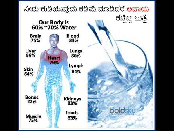 ವಯೋಸಹಜವಾಗಿ ಕೂದಲು ಹಣ್ಣಾಗತೊಡಗುತ್ತಿದ್ದಂತೆಯೇ ಅದನ್ನು ಕಪ್ಪುಮಾಡಿಕೊಳ್ಳಲು ಏನೇನೋ ಕಸರತ್ತು ಮಾಡುವ ನಾವು ನಮ್ಮ ದೇಹ ಮುಪ್ಪಿನತ್ತ ಶೀಘ್ರವಾಗಿ ಸರಿಯುತ್ತಿರುವುದಕ್ಕೆ ಹೆಚ್ಚು ಕಾಳಜಿ ವಹಿಸುತ್ತಿಲ್ಲ. ಈಗ ತಾನೇ ಹುಟ್ಟಿದ ಮಗುವಿನ ದೇಹದ ಎಂಭತ್ತು ಪ್ರತಿಶತ ನೀರಿನಿಂದ ತುಂಬಿದೆ. ವಯಸ್ಸಾಗುತ್ತಿದ್ದಂತೆ ಈ ಶೇಖಡಾವಾರು ಪ್ರಮಾಣ ಕಡಿಮೆಯಾಗುತ್ತಾ ಹೋಗುತ್ತದೆ. ಮುಪ್ಪಿನತ್ತ ಸರಿಯುತ್ತಿದ್ದಂತೆ ಸುಮಾರು ಎಪ್ಪತ್ತು ಪ್ರತಿಶತಕ್ಕೆ ಬಂದು ತಲುಪುತ್ತದೆ. ಕಡಿಮೆ ನೀರು ಕುಡಿಯುವುದರಿಂದ ನಾವೇ ನಮ್ಮ ಕೈಯಾರೆ ಮುಪ್ಪನ್ನು ಬೇಗ ಬಾ ಎಂದು ಕರೆದಂತಾಗುತ್ತದೆ.