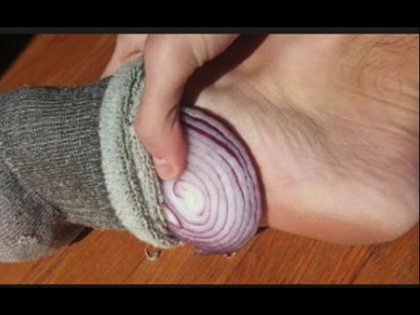 ಈರುಳ್ಳಿಯನ್ನು ಕಾಲುಚೀಲದಲ್ಲಿಟ್ಟು ಮಲಗುವುದರಿಂದ ಜ್ವರ ಮತ್ತು ಇತರ ಚಿಕ್ಕಪುಟ್ಟ ಬಾಧೆಗಳು ಸುಲಭವಾಗಿ ನಿವಾರಣೆಯಾಗುತ್ತವೆ.