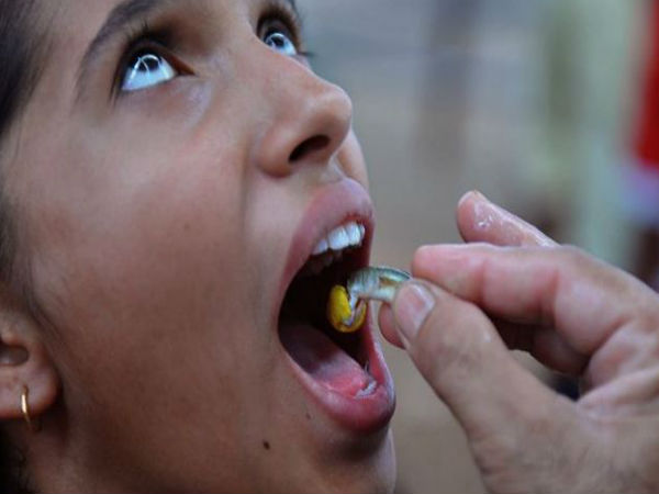 ಜೀವಂತ ಮೀನು ನುಂಗಿಸಿ-'ಅಸ್ತಮಾ' ರೋಗ ನಿವಾರಿಸುವ ಚಿಕಿತ್ಸೆ!