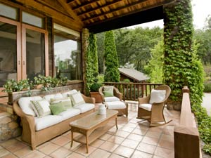 1. ಮರದ ಮತ್ತು ಬಿದಿರಿನ ಪೀಠೋಪಕರಣಗಳು: ಮನೆಯ ಮುಂದೆ ಜಗಲಿಯಿದ್ದರೆ ಬಿದಿರಿನ ಕುರ್ಚಿಗಳನ್ನು ಹಾಕಿದರೆ ಆಕರ್ಷಿತವಾಗಿ ಕಾಣುವುದು. ನಂತರ ಜಗಲಿ ಸೂರ್ಯನ ಕಿರಣಗಳಿಂದ ರಕ್ಷಣೆ ಪಡೆಯಲು ಬಿದಿರಿನ ರೋಲ್ (woven blinds) ಅನ್ನು ಮನೆ ಪಿಲ್ಲರ್ ಗೆ ನೇತು ಹಾಕಬಹುದು. ಇದನ್ನು ನೇತು ಹಾಕಿದರೆ ಮನೆ ಕೂಡ ಆಕರ್ಷಕವಾಗಿ ಕಾಣುತ್ತದೆ.