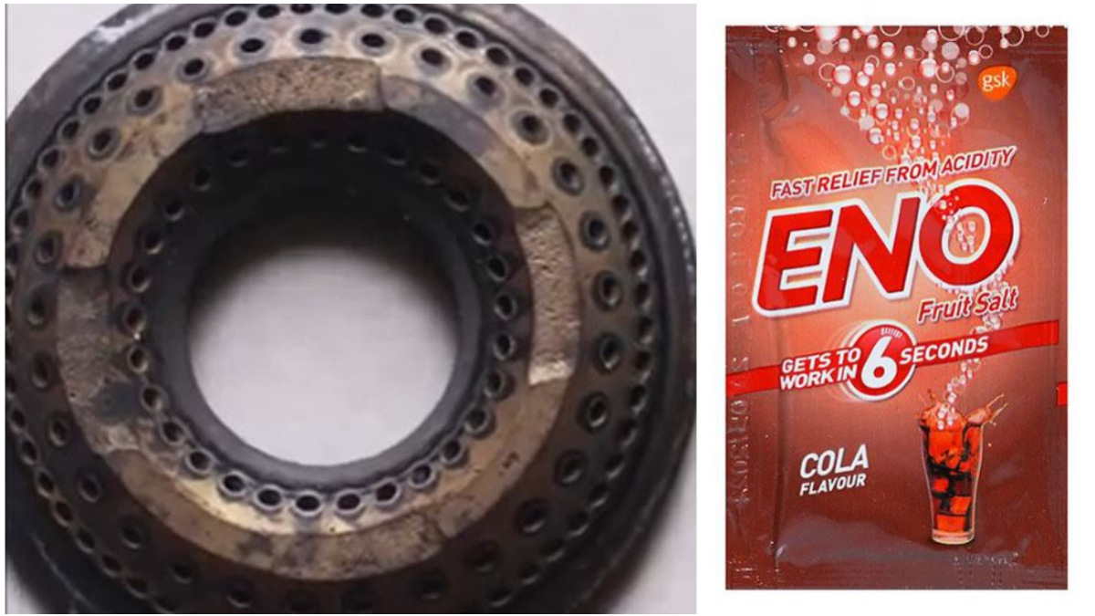 ಹಾಗಾದ್ರೆ ನಾವಿಂದು ಮನೆಯಲ್ಲಿ ಸುಲಭವಾಗಿ ಈ ಜಿಡ್ಡು ಹಿಡಿದಿರುವ ಬರ್ನರ್ ಅನ್ನು ಸ್ವಚ್ಛ ಮಾಡುವುದು ಹೇಗೆ ಎಂಬುದನ್ನು ನೋಡೋಣ. ಮೊದಲು ಒಂದು ಬೌಲ್ನಲ್ಲಿ ಬಿಸಿ ನೀರು ಹಾಕಿಕೊಳ್ಳಿ. ಅದಕ್ಕೆ ಅರ್ಧ ನಿಂಬೆ ಹಣ್ಣನ್ನು ಹಿಂಡಿಕೊಳ್ಳಿ. ಬಳಿಕ ಇದಕ್ಕೆ ಒಂದು ಇನೋ ಪ್ಯಾಕ್ (ಅಸಿಡಿಟಿಗೆ ನೀರಿಗೆ ಮಿಕ್ಸ್ ಮಾಡಿ ಕುಡಿಯುವ ಪದಾರ್ಥ) ಹಾಕಿ. ಆ ನೀರಿನಲ್ಲಿ ಈ ಬರ್ನರ್ ಅನ್ನು 2 ಗಂಟೆಗಳ ಕಾಲ ಅದ್ದಿ ಇಡ ಬೇಕು.