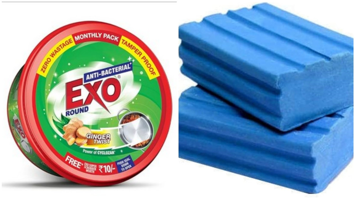 ಇನ್ನು ಪಾತ್ರೆ ತೊಳೆಯಲೆಂದು ನೀವು ಮಾರುಕಟ್ಟೆಯಲ್ಲಿ ಸಿಗುವಂತಹ ಎಕ್ಸೋ ಬಾರ್ ಬಳಸಿರುತ್ತೀರಿ, ವೃತ್ತಾಕಾರದ ಬಾಕ್ಸ್ನಲ್ಲಿ ಬರುವ ಈ ಸಾಬೂನು ಎಲ್ಲರ ಮನೆಯಲ್ಲೂ ಉರುವುದು ಕಾಮನ್, ಇದರಲ್ಲಿ ಪಾತ್ರೆ ಉಜ್ಜಲು ಒಂದು ಸ್ಕ್ರಬ್ ಕೂಡ ಉಚಿತವಾಗಿ ಸಿಗುತ್ತದೆ. ಹೀಗಾಗಿ ಎಲ್ಲರು ಈ ಎಕ್ಸೋ ಬಾರ್ ಬಳಸಲು ಇಷ್ಟಪಡುತ್ತಾರೆ. ಇದರ ಬೆಲೆ ಕೂಡ ಅಧಿಕವಾಗಿದೆ.