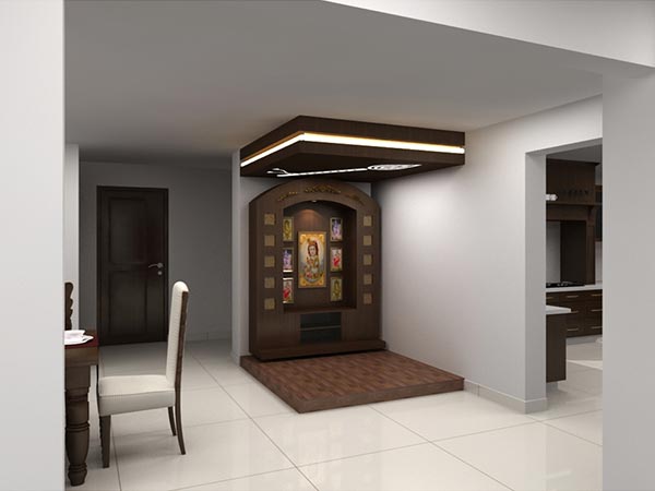 ಅಪಾರ್ಟ್ಮೆಂಟ್ಗಳಲ್ಲಿ ಹೆಚ್ಚಾಗಿ ನೆಲದ ಮೇಲೆ ಇಡಲು ಸ್ಥಳಾವಕಾಶ ಇಲ್ಲವಾದಾಗ ಇರುವ ಮೂಲೆಯ ದಿಕ್ಕನ್ನು ಪೂಜಾ ಕೊಠಡಿಯಾಗಿ ಮಾರ್ಪಡಿಸಬಹುದು. ಈ ಅನನ್ಯ ಜಾಗವನ್ನು ರಚಿಸಲು ನಿಮಗೆ ಬೇಕಾಗಿರುವುದು ಮರದ ದೇವರ ಕೊಠಡಿ ಅಥವಾ ಕೆಲವು ಮರದ ಚಪ್ಪಡಿಗಳು. ನೀವು ಮೂಲೆಯನ್ನು ಸಂಪೂರ್ಣವಾಗಿ ಹೊಂದಿಕೊಳ್ಳುವ ಮತ್ತು ಸೂಕ್ತವಾದ ಎತ್ತರವನ್ನು ಹೊಂದಿರುವ ಮರದ ತುಂಡನ್ನು ಮೂಲೆಗೆ ಹೊಂದಿಸಿ ಅದರ ಮೇಲೆ ದೇವರ ವಿಗ್ರಹ ಅಥವಾ ಫೋಟೋ ಇಡಬಹುದು. ಇವುಗಳು ಗೋಡೆಗೆ ಹೊಂದಿಕೊಳ್ಳುತ್ತವೆ ಮತ್ತು ಹೆಚ್ಚು ಜಾಗವನ್ನು ಸಹ ತೆಗೆದುಕೊಳ್ಳುವುದಿಲ್ಲ.