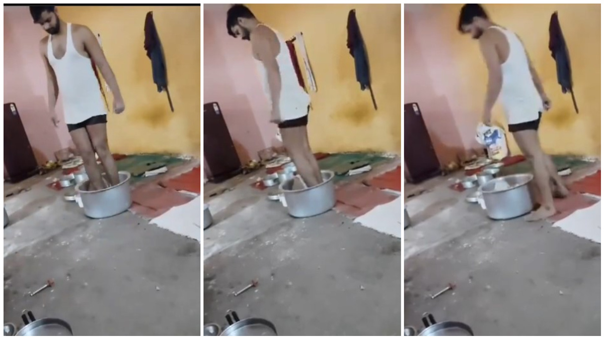 ಇತ್ತೀಚಿಗೆ ಬೀದಿ ಬದಿ ಸ್ನ್ಯಾಕ್ಸ್ ಅನಾರೋಗ್ಯ ತರುತ್ತಿವೆ ಎಂಬ ಆರೋಪ ಹಾಗೂ ಅಪಾಯಗಳ ನಡುವೆ ಇಲ್ಲೊಂದು ಕಡೆ ಮೊಮೊಸ್ ಹಿಟ್ಟನ್ನು ವ್ಯಕ್ತಿಯೊಬ್ಬ ಕಾಲಿನಿಂದ ತುಳಿದು ರೆಡಿ ಮಾಡಿಕೊಳ್ಳುತ್ತಿದ್ದಾನೆ. ದೊಡ್ಡದೊಂದು ಪಾತ್ರೆಗೆ ಹಿಟ್ಟನ್ನು ಹಾಕಿ ಆ ಹಿಟ್ಟನ್ನು ಹದ ಮಾಡಲು ಆಯ ಕಾಲಿನಿಂದ ತುಳಿಯುತ್ತಿದ್ದಾನೆ.