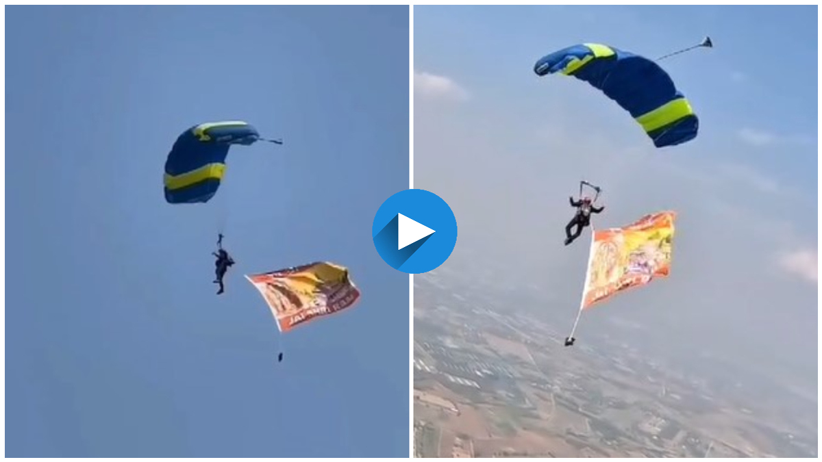 ಸ್ಕೈಡೈವಿಂಗ್ ವಿಶ್ಲೇಷಕ ಮತ್ತು ಕ್ರೀಡಾ ಮತ್ತು ಮಿಲಿಟರಿ ಸಿಬ್ಬಂದಿಗೆ ಬೋಧಕರಾಗಿರುವ ಮಾಜಿ ಅಧಿಕಾರಿ, 10,000 ಅಡಿಗಳಿಂದ ಹಾರಿದ್ದಾರೆ. ಅವರ ಜೊತೆಗೆ ದೊಡ್ಡದಾದ ಜೈ ಶ್ರೀರಾಮ್ ಎಂಬ ಬಾವುಟವೂ ಇದೆ. ಲಘು ವಿಮಾನವು 10,000 ಅಡಿಗಳನ್ನು ತಲುಪಿದಾಗ, ಅವರು ಬಾವುಟದೊಂದಿಗೆ ಜಿಗಿದರು.