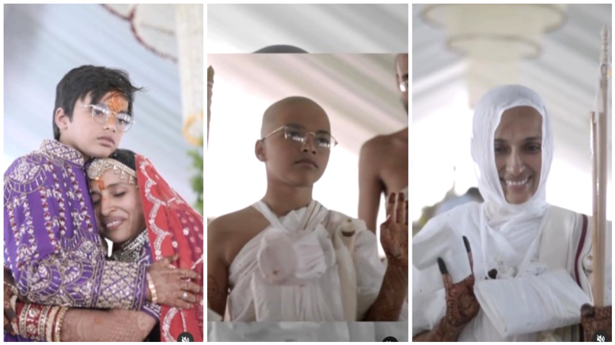 30 ವರ್ಷದ ಸ್ವೀಟಿ ಮತ್ತು ಆಕೆಯ ಪುತ್ರ 11 ವರ್ಷದ ಹೃದನ್ ಈಗ ಸನ್ಯಾಸತ್ವ ಪಡೆದಿದ್ದಾರೆ. ಸ್ವೀಟಿ ಗರ್ಭಿಣಿಯಾಗಿದ್ದಾಗಲೇ ದೀಕ್ಷೆ ಪಡೆಯಬೇಕು ಎಂದುಕೊಂಡಿದ್ದರಂತೆ ಈಗ ಪುತ್ರನಿಗೆ 11 ವರ್ಷ ತುಂಬಿದ ವೇಳೆ ದೀಕ್ಷೆ ಪಡೆಯಲು ನಿರ್ಧರಿಸಿ ನೂರಾರು ಜೈನ ಮುನಿಗಳ ಸಾರತ್ಯದಲ್ಲಿ ಅವರು ದೀಕ್ಷೆ ಪಡೆದಿದ್ದಾರೆ.
