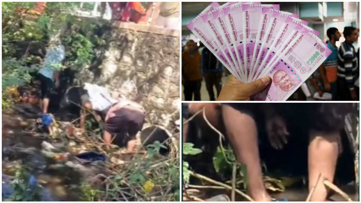 ಮಹಾರಾಷ್ಟ್ರದ ಸಾಂಗ್ಲಿಯಲ್ಲಿ ಈ ರೀತಿಯ ವಿಚಿತ್ರ ಘಟನೆಯೊಂದು ವರದಿಯಾಗಿದೆ. ಅಲ್ಲಿ ಮೋರಿಯಲ್ಲಿ ಜನರು ಮುಗಿಬಿದ್ದು ನೋಟನ್ನು ಎತ್ತಿಕೊಂಡು ಎಣಿಸುತ್ತಿರುವ ವಿಡಿಯೋಗಳು ವೈರಲ್ ಆಗಿವೆ. ಸಾಂಗ್ಲಿಯ ಅಟ್ಟಾಡಿ ಎಂಬಲ್ಲಿ ಈ ರೀತಿಯ ವಿಚಿತ್ರ ಘಟನೆ ನಡೆದಿದೆ. ಅಲ್ಲಿ 500 ರೂಪಾಯಿ ನೋಟುಗಳು ಹಾಗು 200 ಸೇರಿ ಎಲ್ಲಾ ಮೌಲ್ಯದ ನೋಟುಗಳು ಪತ್ತೆಯಾಗಿವೆ.