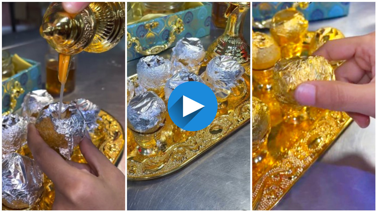 ಈ ವಿಚಿತ್ರ ಪಾನಿಪೂರಿಯನ್ನು ಖುಷ್ಬು ಪರ್ಮಾರ್ ಎಂಬುವರು Instagram ನಲ್ಲಿ ಹಂಚಿಕೊಂಡಿದ್ದಾರೆ. ಇದು ಚಿನ್ನದ ಬಣ್ಣದ ಟ್ರೇ ಮತ್ತು ಗ್ಲಾಸ್ಗಳ ಮೇಲೆ ಹುರಿದ ಪೂರಿಗಳನ್ನು ಇಟ್ಟಿರುವುದನ್ನು ನಾವು ನೋಡಬಹುದು. ನಂತರ ಅವರು ಈರುಳ್ಳಿ ಜಾಗೂ ಮಸಾಲೆಗಳು ಮತ್ತು ಜೇನುತುಪ್ಪದಿಂದ ಪೂರಿಗಳನ್ನು ತುಂಬುತ್ತಾರೆ. ಬಳಿಕ ಪೂರಿಯ ಒಳಗೆ ಪಾನಿಯನ್ನು ಹಾಕಿ ಅಂತಿಮವಾಗಿ ಪೂರಿಗಳ ಮೇಲೆ ತಿನ್ನಬಹುದಾದ ಚಿನ್ನ ಮತ್ತು ಬೆಳ್ಳಿಯ ಕೋಟಿಂಗ್ ಇರುವ ಪೇಪರ್ ಹಾಕುತ್ತಾನೆ. ಬಳಿಕ ಸವಿಯಲು ನೀಡಲಾಗುತ್ತದೆ.