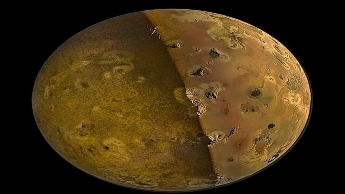 ಚಿತ್ರದಲ್ಲಿ, ಗುರುಗ್ರಹದ ಅತಿದೊಡ್ಡ ಉಪಗ್ರಹಗಳಲ್ಲಿ ಒಂದಾದ ಅಯೋ, ಸುಂದರವಾಗಿ ಮೂಡಿದೆ. ಒಂದು ಕಡೆ ಸೂರ್ಯನ ಬೆಳಕಿನಿಂದ ಹೊಳೆಯುತ್ತಿದೆ. ಮತ್ತೊಂದು ಕಡೆ ಗುರು ಗ್ರಹದ ಬೆಳಕಿನ ಪ್ರತಿಫಲನದಿಂದಾಗಿಯೂ ಕೊಂಚ ಬೆಳಕು ಹೊಂದಿದೆ. ಮೇಳ್ನೋಟಕ್ಕೆ ಚಂದ್ರ ಎರಡು ಹೋಳಾಗಿರುವಂತೆ ಕಂಡುಬರುತ್ತದೆ. ಆದರೆ ಅದರ ಮೇಲ್ಮೈ ಒಂದೇ ಬಣ್ಣದಿಂದ ಕೂಡಿದೆ. ಅಯೋ ಚಂದ್ರನು ಕಿತ್ತಳೆ, ಕಂದು ಮತ್ತು ಹಳದಿ ಬಣ್ಣದ ಛಾಯೆಗಳ ಬಣ್ಣವನ್ನು ಹೊಂದಿದ್ದು, ವೃತ್ತಾಕಾರದ ಜ್ವಾಲಾಮುಖಿ ಬಾವಿಗಳು, ಲಾವಾದ ಹರಿವು, ಮತ್ತು ಪರ್ವತಗಳ ನೆರಳುಗಳನ್ನು ಈ ಚಿತ್ರದಲ್ಲಿ ಗಮನಿಸಬಹುದಾಗಿದೆ. ಗುರು ಗ್ರಹದ ಚಂದ್ರನ ಮೇಲೆ ಚೂಪಾದ ಹತ್ತಾರು ಪರ್ವತಗಳಿರುವುದು ಫೋಟೋದಲ್ಲಿ ಸೆರೆಯಾಗಿದೆ.