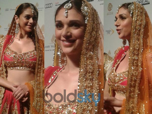 ಈಕೆಯತ್ತ ಎಲ್ಲರ ಚಿತ್ತ ಹರಿಯಲು ಮುಖ್ಯ ಕಾರಣ ಈಕೆ ನಡೆದು ಬಂದ ರೀತಿ. ಅದಿತಿ ರಾವ್ ಟಿಪಿಕಲ್ ಉತ್ತರ ಭಾರತದ ವಧುವಿನ ಹಾಗೆ ಸಿಂಗರಿಸಿಕೊಂಡು ಹೂವಿನ ಚಾದರ ಕೆಳಗೆ ನಡೆದು ಬಂದಳು. ಇದು ಎಲ್ಲರ ಗಮನವನ್ನು ಸೆಳೆಯಿತು.