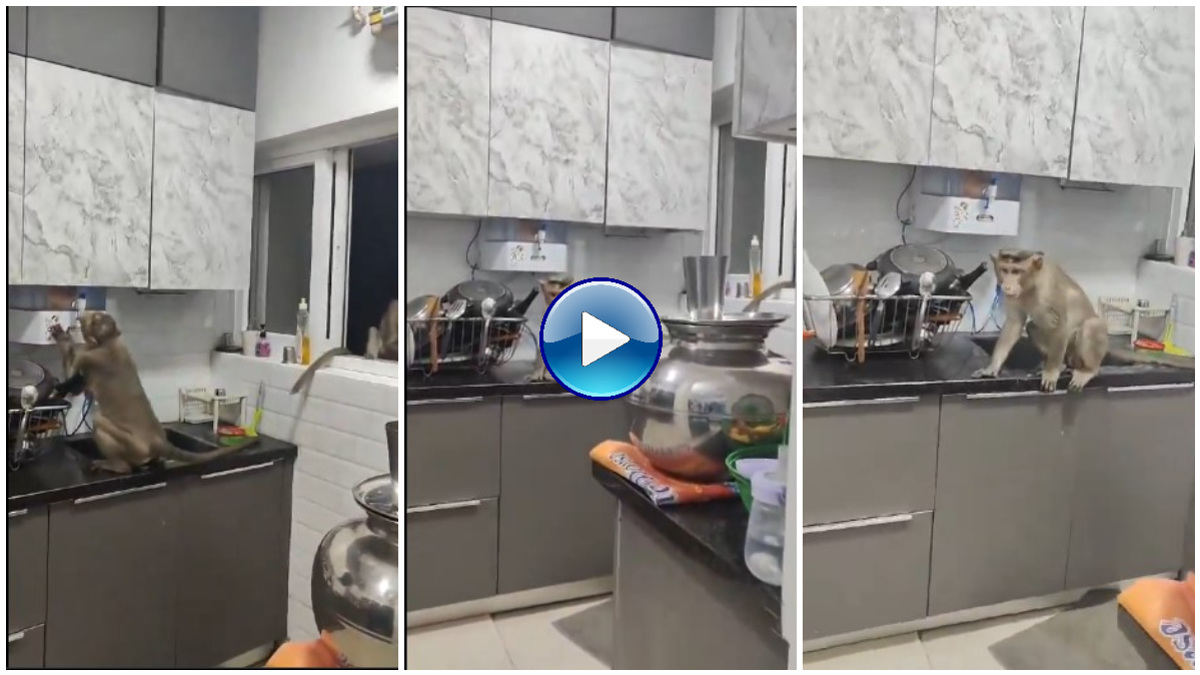 ಈ ವಿಡಿಯೋವನ್ನು ಎಕ್ಸ್ (ಟ್ವಿಟರ್)ನಲ್ಲಿ @akshattak ನಲ್ಲಿ ಹಂಚಿಕೊಳ್ಳಲಾಗಿದೆ. ವಿಡಿಯೋದಲ್ಲಿ ಕೋತಿ ಅಡುಗೆ ಮನೆಗೆ ನುಗ್ಗಿರುವುದನ್ನು ನೋಡಬಹುದು. ಅದು ಪ್ಯೂರಿಫೈಯರ್ ಟ್ಯಾಪ್ನಿಂದ ನೀರು ಕುಡಿಯಲು ಪ್ರಯತ್ನಿಸುತ್ತಿದೆ. ಬಾಲ್ಕನಿಯಲ್ಲಿ ಕುಳಿತಿರುವ ಇನ್ನೊಂದು ಕೋತಿ ಅದನ್ನು ಗಮನಿಸುತ್ತಿದೆ.