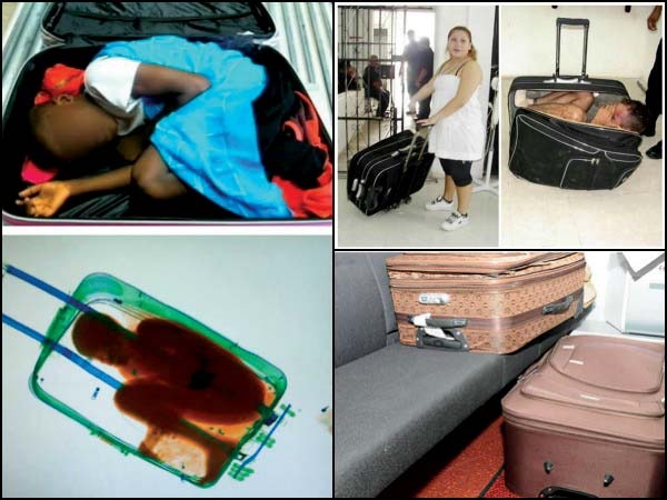2015ರಲ್ಲಿ ಪೆರು ದೇಶದ ಲಿಮಾ ನಗರದ ಜಾರ್ಜ್ ಚಾವೆಜ್ ಅಂತಾರಾಷ್ಟ್ರೀಯ ವಿಮಾನ ನಿಲ್ದಾಣದಲ್ಲಿ ಇಬ್ಬರು ವ್ಯಕ್ತಿಗಳನ್ನು ಬಂಧಿಸಲಾಯಿತು. ಇವರಲ್ಲಿ ಒಬ್ಬ ಇನ್ನೊಬ್ಬನನ್ನು ದೊಡ್ಡ ಸೂಟ್ ಕೇಸ್ ಒಂದರಲ್ಲಿ ತುಂಬಿ ದೇಶದಿಂದ ಪರಾರಿಯಾಗಲು ಯತ್ನಿಸುತ್ತಿದ್ದರು. Image courtesy