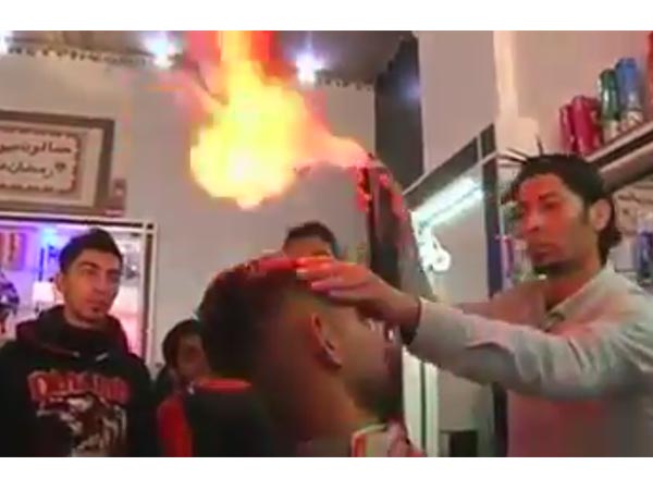 ಈಗ ಭಿನ್ನ ವಿಭಿನ್ನ ಕೇಶವಿನ್ಯಾಸಗಳು ಗಮನ ಸೆಳೆಯುತ್ತಿದ್ದು ಇತ್ತೀಚೆಗೆ ಕತ್ತರಿಯ ಬದಲು ಬೆಂಕಿಯನ್ನು ಬಳಸಿ ಕೂದಲನ್ನು ವಿನ್ಯಾಸಗೊಳಿಸುವ ನೂತನ ವಿಧಾನ ಬಂದಿದ್ದು ನೋಡುವವರ ಎದೆ ಝಲ್ಲೆನಿಸುತ್ತದೆ. ಅಷ್ಟಕ್ಕೂ ಈ ಕೇಶವಿನ್ಯಾಸ ಪ್ರಾರಂಭವಾಗಿದ್ದು ಖ್ಯಾತ ಪಟ್ಟಣವಾದ ಗಾಝಾದಲ್ಲಿ. ಯಾವಾಗ ಈ ಪರಿಯ ಕೇಶಮುಂಡನ ನಗರದಲ್ಲಿ ಲಭ್ಯವಿದೆ ಎಂದು ಗೊತ್ತಾಯಿತೋ, ಆಗಲೇ ನಗರದ ಯುವಕರು, ಹುಡುಗರೆಲ್ಲಾ ಈ ಕ್ಷೌರಿಕನ ಅಂಗಡಿಗೆ ಜಮಾಯಿಸಿಬಿಟ್ಟಿದ್ದಾರೆ. ಬನ್ನಿ, ಬೆಂಕಿಯಿಂದ ಈತ ಹೇಗೆ ಕ್ಷೌರ ಮಾಡ್ತುತಾನೆ ನೋಡೋಣ...