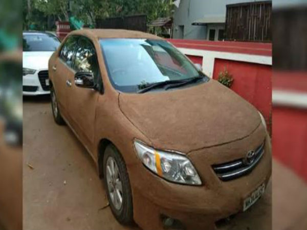 ಸೆಡನ್ ಕಾರ್ ಗೆ ಸಂಪೂರ್ಣವಾಗಿ ಸೆಗಣಿ ಸಾರಿಸಿರುವುದು ಈ ಫೋಟೊದಲ್ಲಿ ಕಂಡುಬಂದಿದೆ.