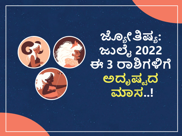 ಜ್ಯೋತಿಷ್ಯ: ಜುಲೈ 2022 ಈ 3 ರಾಶಿಗಳಿಗೆ ಅದೃಷ್ಟದ ಬಾಗಿಲು ತೆರೆದಿದೆ..!