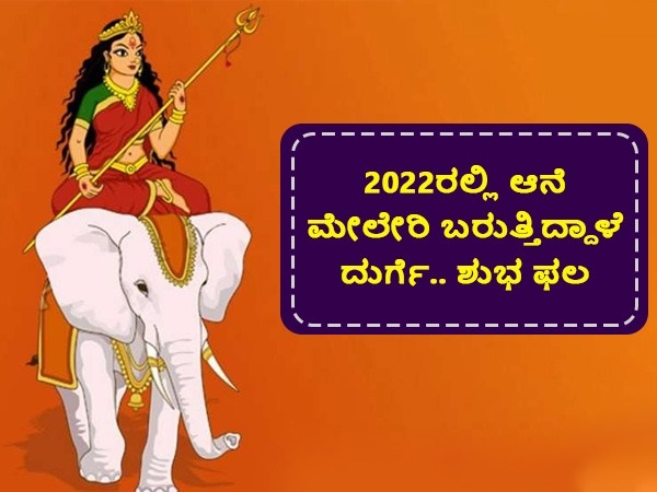2022ರಲ್ಲಿ ಸೆಪ್ಟೆಂಬರ್ 26ಕ್ಕೆ ಅಂದರೆ ಸೋಮವಾರ ನವರಾತ್ರಿ ಪ್ರಾರಂಭವಾಗುವುದು. ಆದ್ದರಿಂದ ದುರ್ಗೆ ಆನೇಯ ಮೇಲೇರಿ ಬರುತ್ತಿದ್ದಾಳೆ. ದುರ್ಗೆ ಆನೆಯ ಮೇಲೇರಿ ಬರುವುದನ್ನು ತುಂಬಾ ಶುಭ ಎಂದು ಪರಿಗಣಿಸಲಾಗಿದೆ.