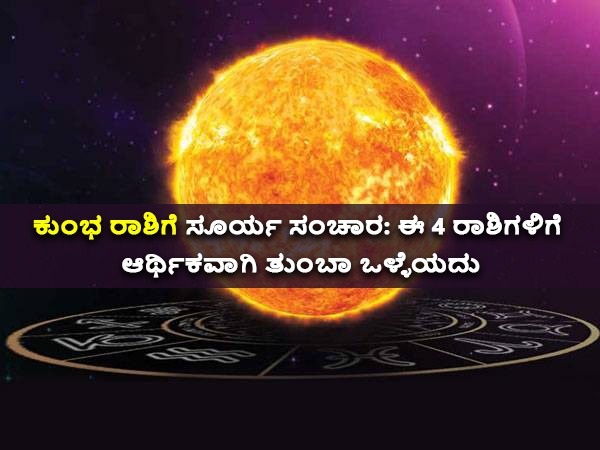 ಕುಂಭ ರಾಶಿಯಲ್ಲಿ ಸೂರ್ಯ ಸಂಕ್ರಮಣ: ಈ 4 ರಾಶಿಗಳಿಗೆ ಆರ್ಥಿಕವಾಗಿ ತುಂಬಾ ಒಳ್ಳೆಯದು