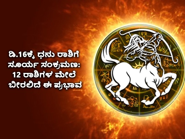 ಡಿ.16ರಂದು ಧನು ರಾಶಿಯಲ್ಲಿ ಸೂರ್ಯ ಸಂಕ್ರಮಣ: 12 ರಾಶಿಗಳ ಮೇಲೆ ಇರಲಿದೆ ಈ ಪ್ರಭಾವ