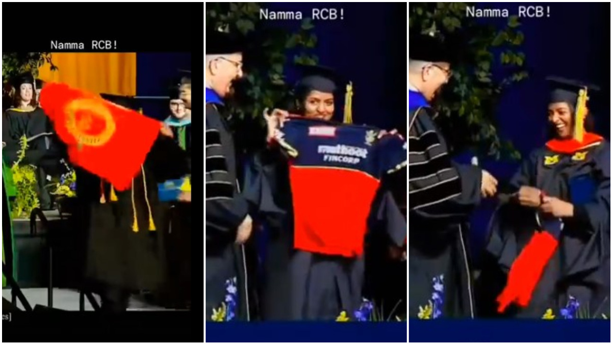 ಭಾರತೀಯ ಮೂಲದ ವಿದ್ಯಾರ್ಥಿನಿ ಹಾಗೂ ವಿದ್ಯಾರ್ಥಿ ಪದವಿ ಪಡೆಯುವಾಗ ಆರ್ಸಿಬಿಗೆ ಜೈಕಾರ ಕೂಗಿದ್ದಾರೆ. ಅಮೆರಿಕದ ಯುನಿವರ್ಟಿಸಿಯಲ್ಲಿ ಪದವಿ ಪ್ರದಾನ ಮಾಡುವಾಗ ವಿದ್ಯಾರ್ಥಿಗಳು ಆರ್ಸಿಬಿಯ ಬಾವುಟ ಹಿಡಿದು ಜೈಕಾರ ಹಾಕಿರುವ ವಿಡಿಯೋ ಇದಾಗಿದೆ.