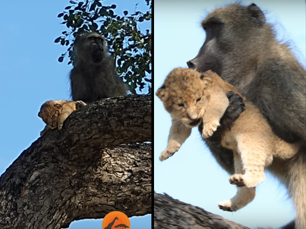 ದಿ ಲಯನ್ ಕಿಂಗ್ ಸಿನಿಮಾದಲ್ಲಿ ನೋಡಿದ್ದರೆ ಅದರಲ್ಲಿ ಒಮದು ದೃಶ್ಯ ನಿಮಗೆ ನೆನಪಿರಬಹುದು. ಮಂಗವೊಂದು ಸಿಂಹದ ಮರಿಯನ್ನು ಎತ್ತಿಕೊಂಡು ಎತ್ತರದ ಬೆಟ್ಟಕ್ಕೆ ಎತ್ತಿಕೊಂಡು ಇಡೀ ಕಾಡಿನ ದರ್ಶನ ಮಾಡಿಸುತ್ತದೆ. ಆದರೆ ಅಂತಹದ್ದೇ ಘಟನೆಯೊಂದು ಒಂದು ದಕ್ಷಿಣ ಆಫ್ರಿಕಾದ ಕಾಡಿನಲ್ಲಿ ನಡೆದಿದ್ದು, ಇದೀಗ ಆ ವೀಡಿಯೋ ವೈರಲ್ ಆಗಿದೆ.