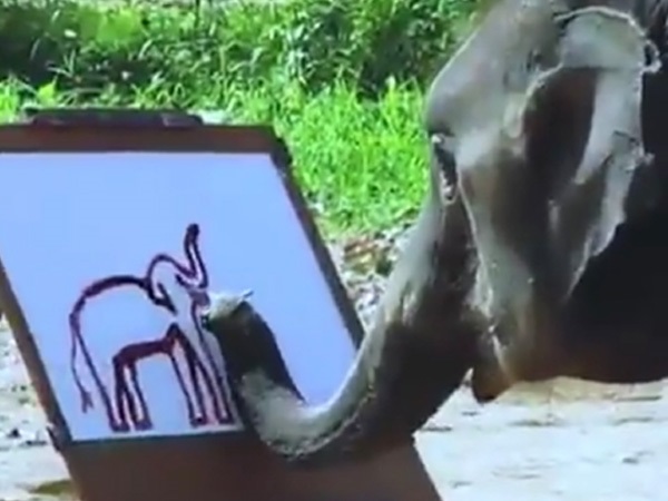 ವೈರಲ್ ವೀಡಿಯೋ: ಆನೆಯೊಂದು ಬಿಡಿಸಿದ ಆನೆಯ ಚಿತ್ರ ನೋಡಣ್ಣಾ...