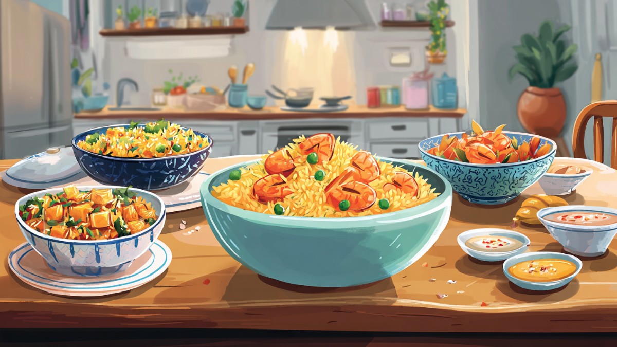 ಮಳೆಗಾಲದಲ್ಲಿ ಬಿಸಿ ಬಿಸಿಯಾದ ಫ್ರೈಡ್ ರೈಸ್ (Fried Rice) ತಿನ್ನಲು ಯಾರಿಗೆ ತಾನೇ ಇಷ್ಟವಿಲ್ಲ ಹೇಳಿ. ಆದರೆ, ಮಳೆಯಲ್ಲಿ ಫ್ರೈಡ್ ರೈಸ್ ಹೇಗೆ ತಯಾರಿಸುವುದು ಎಂಬ ಪ್ರಶ್ನೆ ನಿಮ್ಮನ್ನು ಕಾಡುತ್ತಿರಬಹುದು. ಒಂದೇ ರೀತಿಯ ಫ್ರೈಡ್ ರೈಸ್ ತಿಂದು ಬೇಜಾರಾಗಿದ್ದರೆ, ಚಿಂತಿಸಬೇಡಿ. ನಾವಿಂದು 9 ಬಗೆಯ ವಿಭಿನ್ನ ಫ್ರೈಡ್ ರೈಸ್ (9 Types Of Fried Rice) ಮಾಡುವ ವಿಧಾನಗಳನ್ನು ನಿಮಗೆ ತಿಳಿಸಿಕೊಡಲಿದ್ದೇವೆ. ಇವು ರುಚಿಕರ ಮಾತ್ರವಲ್ಲದೆ, ಮನೆಯಲ್ಲಿ ತಯಾರಿಸಲು ಸುಲಭವಾಗಿದೆ. ಕೆಲವು ಸರಳ ಪದಾರ್ಥಗಳು ಮತ್ತು ಸ್ವಲ್ಪ ಸಮಯ ಇದ್ದರೆ, ನೀವು ರುಚಿಕರವಾದ ಫ್ರೈಡ್ ರೈಸ್ ಬೇಗನೆ ತಯಾರಿಸಬಹುದು.