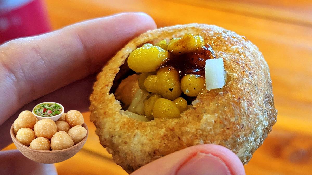 ಮೊದಲು, 1 ಅಥವಾ 2 ಬೇಯಿಸಿದ ಆಲೂಗಡ್ಡೆ ತೆಗೆದುಕೊಳ್ಳಿ. ಅವುಗಳನ್ನು ಸಣ್ಣ ತುಂಡುಗಳಾಗಿ ಕತ್ತರಿಸಿ. 1 ಈರುಳ್ಳಿ ತೆಗೆದುಕೊಂದು ಸಣ್ಣಗೆ ಕತ್ತರಿಸಿ. ಈಗ 10 ರಿಂದ 12 ಗೋಲ್ಗಪ್ಪ ಪುರಿ ತೆಗೆದುಕೊಳ್ಳಿ. ಇವುಗಳನ್ನು ಒಂದು ತಟ್ಟೆಯಲ್ಲಿ ಇಡಿ ಅಥವಾ ನಿಮಗೆ ಇಷ್ಟ ಬಂದಂತೆ ಅಲಂಕರಿಸಿ. ಎಲ್ಲಾ ಪೂರಿಯಲ್ಲೂ ಹೋಲ್ (ರಂಧ್ರ) ಮಾಡಿ. ಅದರಲ್ಲಿ ಸ್ವಲ್ಪ ಆಲೂಗಡ್ಡೆ ಮತ್ತು ಈರುಳ್ಳಿ ಹಾಕಿ.