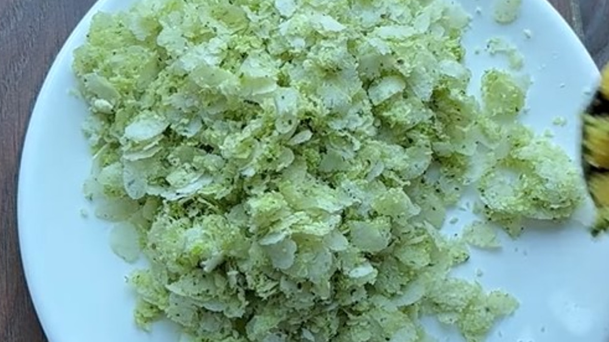 ಈಗ ಒಂದು ಬಾಣಲೆಯಲ್ಲಿ ತೆಳು ಅವಲಕ್ಕಿಯನ್ನು ಹಾಕಿಕೊಳ್ಳಿ. ಈ ಅವಲಕ್ಕಿಯನ್ನು ಜರಡಿ ಹಿಡಿದು ಬಳಸಿಕೊಳ್ಳಬೇಕು. ಇದರಲ್ಲಿ ಪುಡಿ, ಕಸ ಇರುವ ಕಾರಣ ಜರಡಿ ಹಿಡಿದರೆ ಉತ್ತಮ. ಈಗ ಅವಲಕ್ಕಿ ಹಾಕಿರುವ ಪಾತ್ರೆಗೆ ರುಬ್ಬಿಕೊಂಡಿರುವ ಹುಡಿ ಮಸಾಲೆಯನ್ನು ಹಾಕಿಕೊಂಡು ಚೆನ್ನಾಗಿ ಮಿಕ್ಸ್ ಮಾಡಿಕೊಳ್ಳಿ. ಇದು ಹಸಿ ಬಣ್ಣದ ಅತ್ಯಂತ ರುಚಿಕರ ಖಾದ್ಯವಾಗುತ್ತೆ. ಚೆನ್ನಾಗಿ ಮಿಕ್ಸ್ ಮಾಡಿಕೊಳ್ಳುತ್ತಾ ರುಚಿ ನೋಡಿಕೊಳ್ಳಿ.