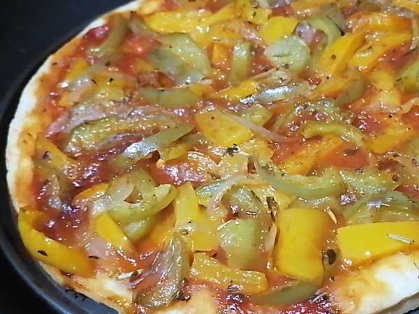 ಇಲ್ಲಿ ನಾವು ಅಂಜಲಿ ರಾವ್ ನಮಗೆ ತಿಳಿಸಿಕೊಟ್ಟಿರುವ ವೆಜ್ ಪಿಜ್ಜಾ ರೆಸಿಪಿ ನೀಡಿದ್ದೇವೆ. ನಿಮ್ಮ ಮನೆಯಲ್ಲಿ ಓವನ್ ಇಲ್ಲದಿದ್ದರೂ ಕೂಡ ತಯಾರಿಸಬಹುದಾದ ಪಿಜ್ಜಾ ಇದಾಗಿದೆ.