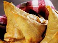 * ನಂತರ ಹಿಟ್ಟನ್ನು ತ್ರಿಕೋನಾಕಾರದಲ್ಲಿ ಲಟ್ಟಿಸಿಕೊಂಡು ಅದರಲ್ಲಿ ಪಲ್ಯ ತುಂಬಿ, ಅಂಚುಗಳನ್ನು ಸರಿಯಾಗಿ ಮುಚ್ಚಿ, ಚೆನ್ನಾಗಿ ಕಾದ ಎಣ್ಣೆಯಲ್ಲಿ ಕರಿಯಿರಿ.