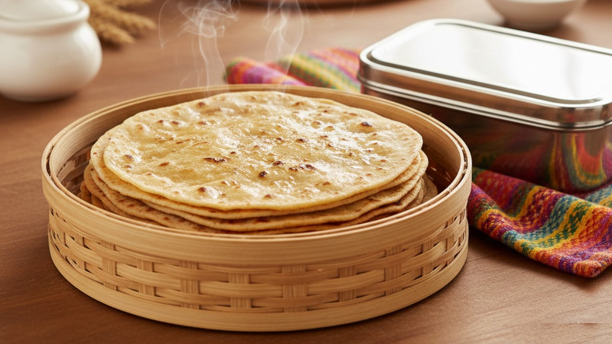 ಬಿಸಿಯಾದ ರೊಟ್ಟಿಗಳನ್ನು ನೇರವಾಗಿ ಸ್ಟೀಲ್ ಡಬ್ಬಿಯಲ್ಲಿ ಹಾಕಬೇಡಿ. ಹೀಗೆ ಮಾಡುವುದರಿಂದ ರೊಟ್ಟಿಯಿಂದ ಹೊರಬರುವ ಹಬೆ ನೀರಾಗಿ, ರೊಟ್ಟಿ ಮೆತ್ತಗಾಗಬಹುದು (Soggy). ಮೊದಲಿಗೆ ರೊಟ್ಟಿಯನ್ನು ಒಂದು ಶುಭ್ರವಾದ ಹತ್ತಿ ಬಟ್ಟೆ ಅಥವಾ ಪೇಪರ್ ನ್ಯಾಪ್ಕಿನ್ನಲ್ಲಿ ಸುತ್ತಿ, ನಂತರ ಕ್ಯಾಸರೋಲ್ (Casserole) ಅಥವಾ ಏರ್ಟೈಟ್ ಡಬ್ಬಿಯಲ್ಲಿ ಸಂಗ್ರಹಿಸಿ. ಇದು ರೊಟ್ಟಿಯ ತೇವಾಂಶವನ್ನು ಉಳಿಸಿಕೊಂಡು, ಹಾಳಾಗದಂತೆ ನೋಡಿಕೊಳ್ಳುತ್ತದೆ.