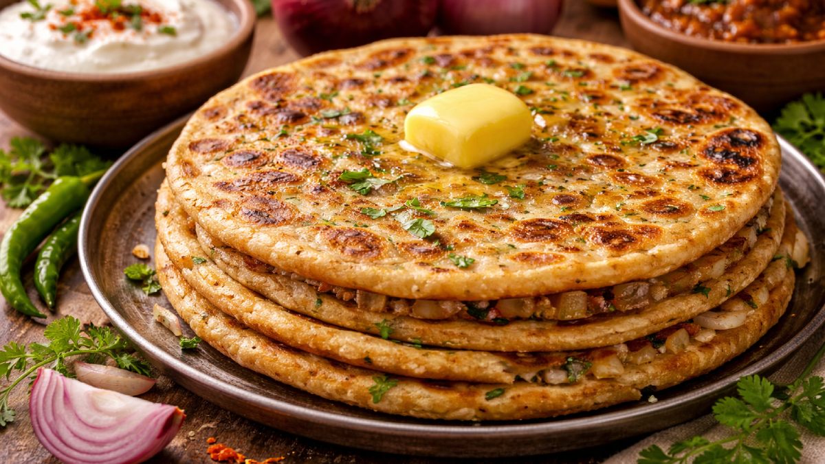 ಪರೋಟ ಪ್ರಿಯರಿಗೆ ಈರುಳ್ಳಿ ಪರೋಟ ಸದಾ ಒಂದು ಅಚ್ಚುಮೆಚ್ಚಿನ ತಿನಿಸಾಗಿದೆ. ಮನೆಯಲ್ಲಿಯೇ ಹೋಟೆಲ್ ಶೈಲಿಯಲ್ಲಿ, ಪರಿಪೂರ್ಣ ಪರೋಟ ತಯಾರಿಸುವುದು ನಿಜಕ್ಕೂ ಒಂದು ಕಲೆಗಾರಿಕೆ. ಇಲ್ಲಿ ವಿವರಿಸಿರುವ ವಿಶಿಷ್ಟ ಮಸಾಲೆಯುಕ್ತ ಈರುಳ್ಳಿ ಸ್ಟಫಿಂಗ್ ಮತ್ತು ನವೀನ ಪದರ ಮಾಡುವ ವಿಧಾನವು ನಿಮ್ಮ ಅಡುಗೆ ಅನುಭವವನ್ನು ಮತ್ತಷ್ಟು ವಿಶೇಷಗೊಳಿಸುತ್ತದೆ. ಚಟಪಟ ಈರುಳ್ಳಿ ಪರೋಟ ತಯಾರಿಸಲು ಅಗತ್ಯವಾದ ಸಾಮಗ್ರಿಗಳು ಮತ್ತು ವಿಧಾನ (Onion Paratha recipe) ಇಲ್ಲಿದೆ.