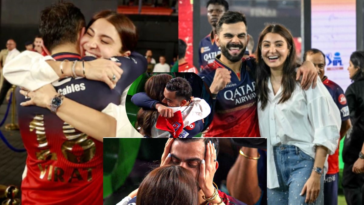 ಬರೋಬ್ಬರಿ 17 ವರ್ಷಗಳ ಬಳಿಕ ರಾಯಲ್ ಚಾಲೆಂಜರ್ಸ್ ಬೆಂಗಳೂರು (RCB) ತಂಡ ಐಪಿಎಲ್ ಟ್ರೋಫಿಗೆ ಮುತ್ತಿದೆ. ಈ ಮೂಲಕ ಮಿಲಿಯನ್ ಡಾಲರ್ ಟೂರ್ನಿಯಲ್ಲಿ ಹೊಸ ಇತಿಹಾಸ ಸೃಷ್ಟಿಸಿತು. ಇನ್ನು ಕಳೆದ 18 ವರ್ಷಗಳಿಂದ ವಿರಾಟ್ ಕೊಹ್ಲಿ (Virat Kohli) ಆರ್ಸಿಬಿ ತಂಡಕ್ಕೆ ಲಾಯಲ್ ಆಗಿದ್ದಾರೆ. ಕೊನೆಗೂ ಕೊಟ್ಯಂತರ ಅಭಿಮಾನಿಗಳ ಕನಸನ್ನು ನನಸು ಮಾಡುವಲ್ಲಿ ಯಶಸ್ಸು ಕಂಡಿದ್ದಾರೆ. ನಿನ್ನೆಯ ಫೈನಲ್ ಪಂದ್ಯದ ಗೆಲುವಿನ ಬಳಿಕ, ವಿರಾಟ್ ಕೊಹ್ಲಿ ಅವರು ಓಡಿಬಂದು ತಮ್ಮ ಪತ್ನಿ ಅನುಷ್ಕಾ ಶರ್ಮಾ (Anushka Sharma) ಅವರನ್ನು ತಬ್ಬಿಕೊಂಡರು. ಅನುಷ್ಕಾ ಶರ್ಮಾ ಅವರು ಪತಿಯ ಕಣ್ಣೀರು ಒರೆಸಿದ ಕ್ಷಣಗಳು ಭಾರೀ ವೈರಲ್ ಆಗಿವೆ.