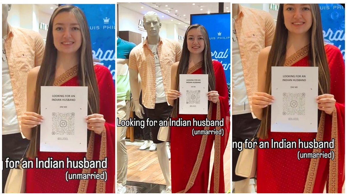 'ಭಾರತೀಯ ಪತಿಯನ್ನು (ಅವಿವಾಹಿತ) ಹುಡುಕುತ್ತಿದ್ದೇನೆ' ಎಂದು ಬರೆದ ಪೋಸ್ಟರ್ ಅನ್ನು ಹಿಡಿದಿದ್ದಾಳೆ. ಪೋಸ್ಟರ್ನಲ್ಲಿ ಆಕೆಯ ಇನ್ಸ್ಟಾಗ್ರಾಮ್ ಪ್ರೊಫೈಲ್ನ ಕ್ಯೂಆರ್ ಕೋಡ್ ಅನ್ನು ಪೇಪರ್ನಲ್ಲಿ ಮುದ್ರಿಸಲಾಗಿದೆ. ಆಕೆ ಈ ವಿಡಿಯೋವನ್ನು ಇನ್ಸ್ಸ್ಟಾಗ್ರಾಮ್ನಲ್ಲಿ ಹಂಚಿಕೊಂಡಿದ್ದಾಳೆ.